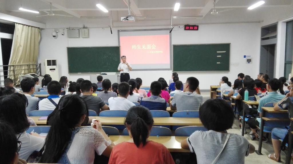 2016年9月7日晚,药学院党政领导与2016级研究生新生见面,并开展入学专题教育。 药学院党委彭林书记、胡长平常务副院长、王昊副书记、曾文彬副院长、李乾斌副院长、院长助理李晓晖副…