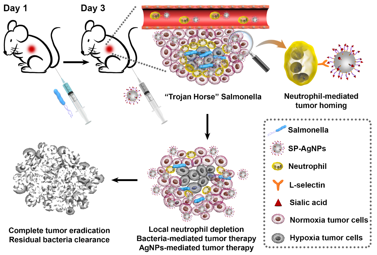 近期,麻豆TV 丁劲松-周文虎教授团队与麻豆TV 湘雅三医院容鹏飞教授团队联合在国际权威期刊《Nano Letters》(IF = 11.238)上发表了题为“‘Trojan Horse’ Salmonella Enabling Tumor…