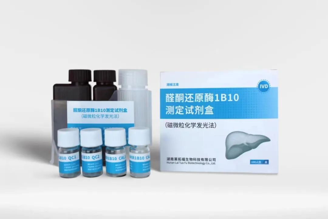 曹德良团队原创性发现醛酮还原酶1B10(AKR1B10)新型肝癌血清标志物,并成功研发具有完全自主知识产权的新型肝癌诊断产品《醛酮还原酶1B10测定试剂盒》,获得国家三类体外诊断试剂注册证(国械注准20233401965)。该产品为全球首创、全球唯一,对肝癌诊断与监测的灵敏度与可靠性全面优于AFP,被誉为肝癌“哨探”,获得多个科技荣誉与奖励,并孵化生物医药高科技企业湖南莱拓福生物科技有限公司。目前,已实现规模化产业,正全面进入临床使用。该项目创新性地为肝癌早期诊断与监测提供新方法、新技术,对肝癌患者与国家卫生经济具有深远的影响。