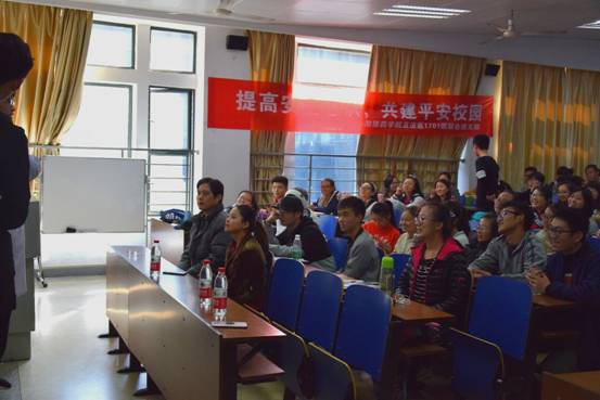 接着由岳麓派出所刑侦中队长——周忠良警官为同学们做出了“大学生常见涉法问题”的精彩法制讲座,讲座以鲜明的实例、相关案件的情节发展以及心理分析等方面为同学们详细讲解了诸如校园网络贷、电信诈骗、扒窃偷盗等违法行为的发生和发展,同时教育和呼吁同学们要知法、守法。