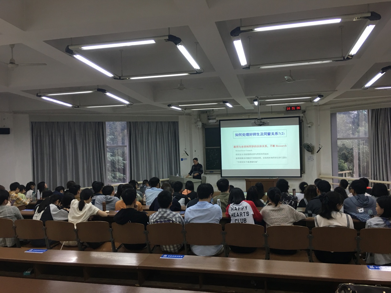 会议共有九项议程。主要对新生进行了四大方面的教育,校情院情、安全稳定教育;学术道德、科研诚信教育;校纪校规、心理健康教育;教学培养、学位授予以及奖助学金政策宣讲。
