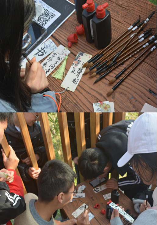 提问结束后,同学们参与到现场的书签和香囊制作的活动环节中,拿起毛笔,在书签上写下对中医药的热爱和对未来的憧憬;做一份专属香囊,装入的不仅仅是各色的中草药,更是对生活的热爱与企盼。空气中弥漫着艾草和茉莉等药草混合的香气,给大家留下深刻的回忆。