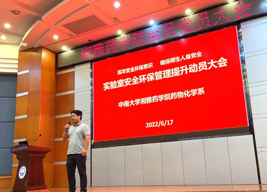 为积极响应柴校长指示,湘雅药学药物化学系于6月17日下午在福庆楼4楼报告厅举行了实验室安全环保管理提升动员大会。学院党委书记龚涛、主持行政工作的副院长刘昭前以及系全体教师和在读研究生参加。