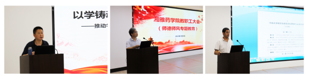 教师师德失范行为负面清单及处理办法》,详细阐述了文件提出的要求和不能触碰的纪律红线。他指出,师德师风建设是教师队伍建设的第一标准和首要任务,全院教师要认真学习习近平总书记对师德师风建设的重要指示批示精神,恪守初心,严守行为准则,牢牢守住师德底线,争做“四有”好老师,培养担得起民族复兴大任的时代新人。