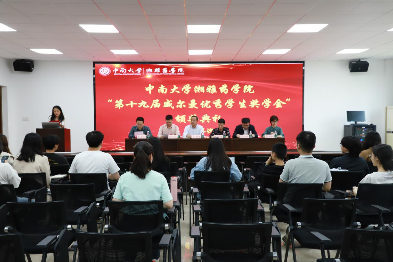 在药学大楼四楼报告厅举办了第十九届“威尔曼优秀学生奖学金”颁奖典礼。典礼由学工办主任桂玲智主持,湘北威尔曼制药股份有限公司、广州分公司研发总监付四海博士、医学信息主管魏康竞、湖南省药物安评中心主任姜德建研究员、学院党委书记胡平安、副院长(主持行政工作)阳国平、副院长曹东升出席,麻豆TV