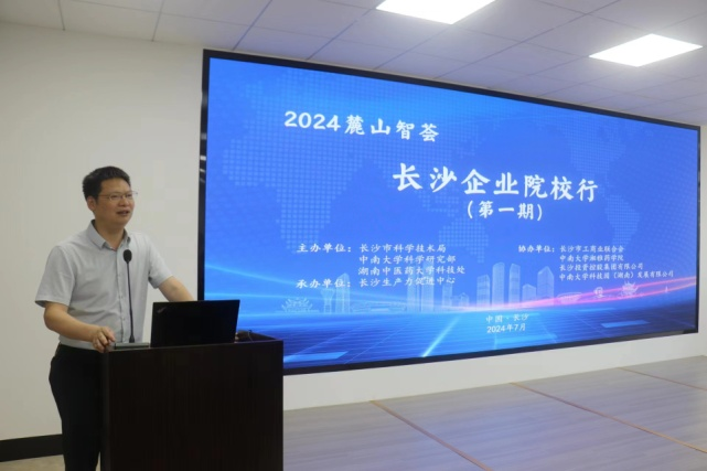 科学研究部、湖南中医药大学科技处共同主办,长沙生产力促进中心承办的“麓山智荟——长沙企业院校行”活动(第一期)于2024年7月4日开展。本次活动共有湖南迪诺制药股份有限公司、长沙晶易医药科技股份有限公司等20余家生物医药领域相关企业报名参加,重点考察走访高校实验室建设和科研创新平台,并开展技术交流、成果对接等活动。