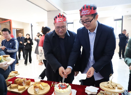 全体师生以温馨的集体生日会方式,共同表达对母校的深情祝福。活动在学院大厅举行,师生们齐聚一堂,品尝生日蛋糕与奶茶,分享喜悦与感动,现场气氛融洽温馨。