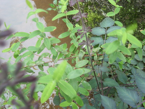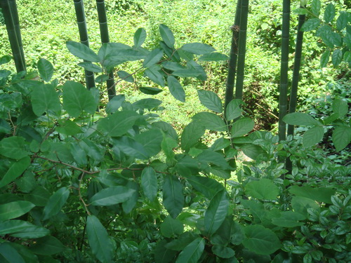 胡颓子E.pungen,又名羊奶子,胡颓子科胡颓子属.大型常绿灌木,通常具刺。枝开展,小枝褐色。叶厚革质,边缘通常波状,下面初具银白色鳞片,后渐变褐色鳞片,花1~3朵或4朵簇生,银白色,下垂,有香气。根有祛风利湿,行瘀止血之效。用于传染性肝炎,小儿疳积,风湿关节痛,咯血,吐血,便血,崩漏,白带,跌打损伤。叶有止咳平喘之效。用于支气管炎,咳嗽,哮喘。果有消食止痢。用于肠炎,痢疾,食欲不振。