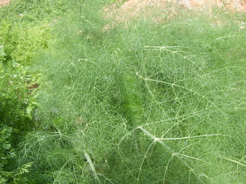 小茴香FoeniculumvulgareMill.伞形科茴香属。多年生草本,全株表面有粉霜,具强烈香气。茎直立,上部分枝,有棱。叶互生,2~4回羽状细裂,最终裂片丝状;基生叶丛生,有长柄;茎生叶互生,叶柄基部扩大呈鞘状抱茎,花小,金黄色,组成顶生或侧生的复伞形花序。双悬果,分果常稍弯曲,具5棱,具特异芳香气。果实入药,有散寒止痛,理气和胃;活血、利气、止痛之效。