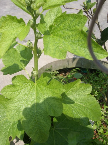锦葵Common Mallow,锦葵科锦葵属。多年生宿根直立草本,分枝多,疏被粗毛。叶互生;叶柄长4-8cm,近无毛,但上面槽内被长硬毛;托叶偏斜,卵形,叶圆心形或肾形,具5-7圆齿状钝裂片,长、宽几相等,基部近心形至圆形,边缘具圆锯齿,两面均无毛或仅脉上疏被短糙状毛。花3-11朵簇生。花、叶、茎入药,有利尿通便、清热解毒之效,用于大小便不畅;带下;淋巴结结核;咽喉肿痛。