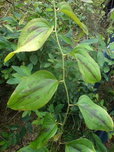 菝葜Smilax china L. 百合科菝葜属。金刚藤、铁菱角、马加勒、筋骨柱子、红灯果、金刚刺、九牛力。