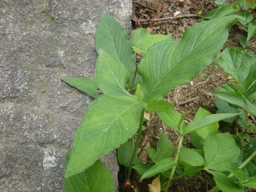 半夏Pinellia ternata(Thunb.)Breit.天南星科有毒植物。块茎近球形,叶出自块茎顶端,叶柄下部内侧生一白色珠芽;一年生的叶为单叶,卵状心形;2~3年后,叶为3小叶的复叶,两面光滑无毛。半夏肉穗花序顶生,花序梗常较叶柄长;佛焰苞绿色,花单性,无花被,雌雄同株;雄花着生在花序上部,白色,雄蕊密集成圆筒形,雌花着生于雄花的下部,绿色.球茎入药,有燥湿化痰,降逆止呕,消痞散结之效。既主治脾湿痰壅之痰多咳喘气逆,如二陈汤、小青龙汤,又治湿痰上犯之眩晕心悸失眠,如半夏白术天麻汤,还可治风痰吐逆,头痛肢麻,半身不遂,口眼歪斜等症,如玉壶丸。解毒:用姜汁。