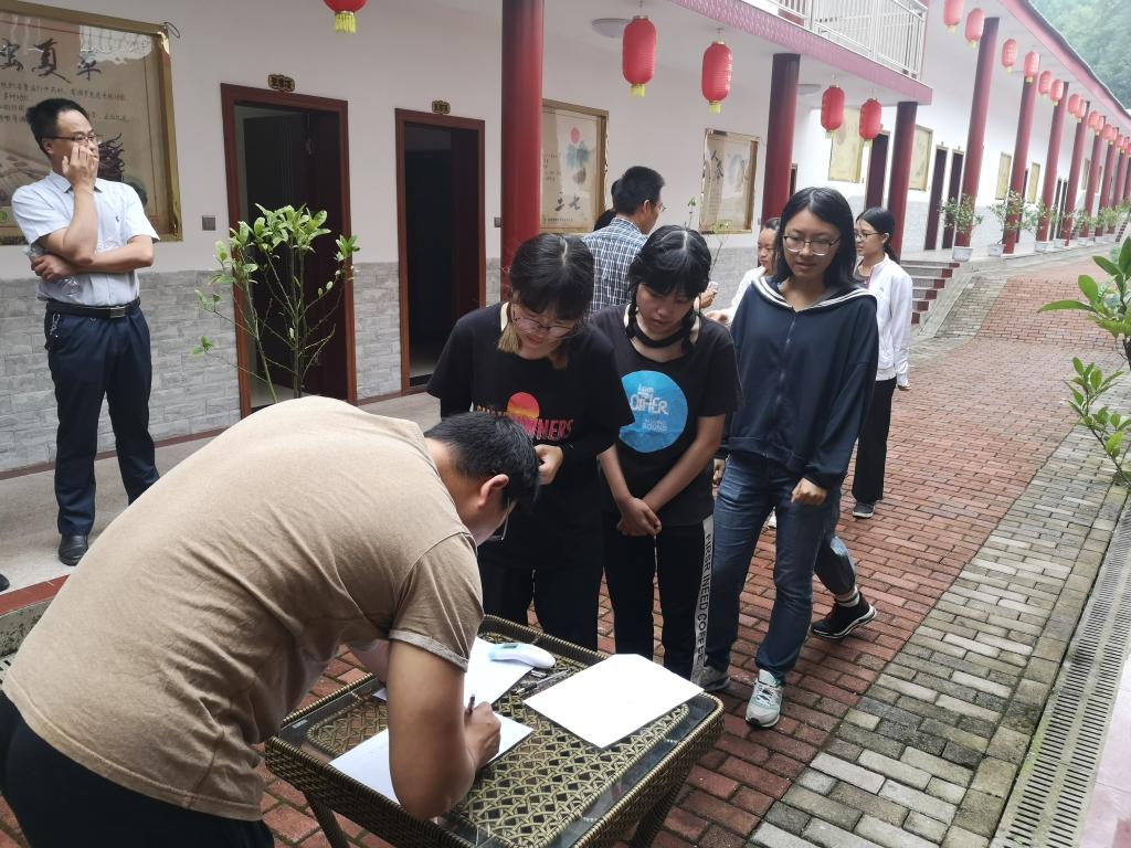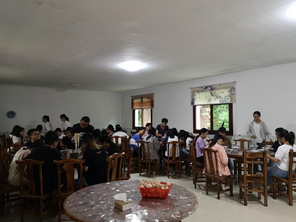 9月11日,学生是10:30从考场上出来拍完合影就上车的,11:00准时出发,到达贾岭药博园的住地已经13:30左右,好在之前就已经分配好了房间,车至半途通知基地负责人打开每间房间,准备好饭菜,所以一到基地,各组领完工具就直接进房间放行李,然后进餐厅午饭,稍作休息,14:30再集合时,个个元气满满,对接下来的学习充满期待。