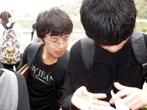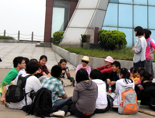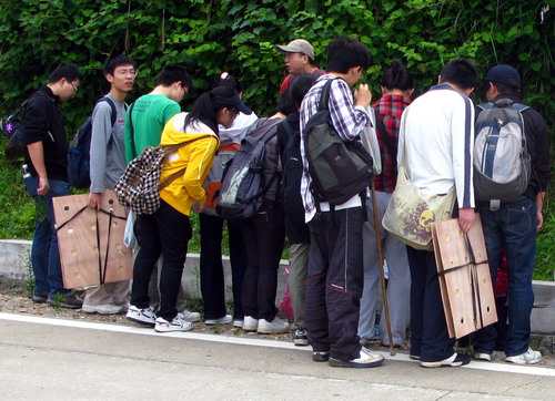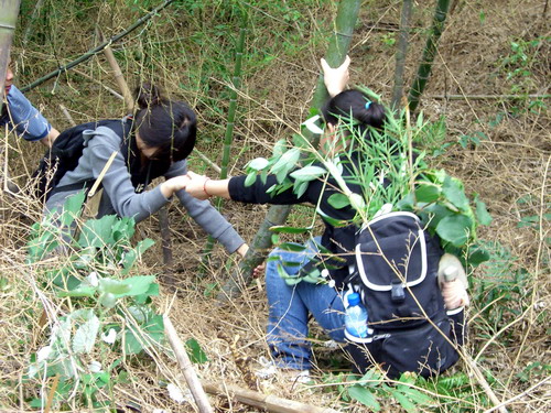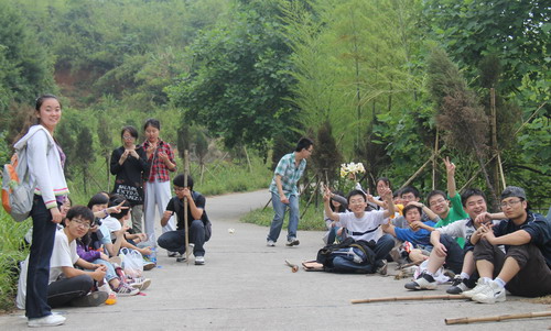 15、休息一下。两组分坐路的两边,虽谈笑往来却不混搭,这就是“组”的魅力。