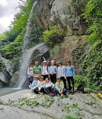 一路上认植物、学植物、做标本,感觉时间过得特别快。不知不觉走到了一个瀑布前,好像是叫下桎木潭,看到瀑布之后大家都非常开心,正好在瀑布下有几块大石头,这时有同学提议就在这里考试吧。于是同学们手忙脚乱地从袋子里拿出植物,分别摆在眼前,然后不约而同地开始一起朗读,麦冬百合科、菝葜百合科、黄独薯蓣科......就好像小学生晨读现场。等到考试的时候,发现平时在书本上那些很难记的植物竟然一下子都记住了,于是非常有成就感。这种边玩边学的方式不仅提高了学习效率,也让记忆更加深刻,更为我们带来了很多乐趣。