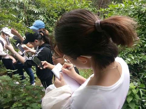 授人以鱼不如授人以渔:学生们在仔细观察植物特征。