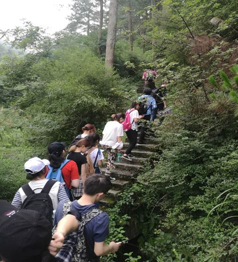 回家。与上山各队为阵不同,下山由雷教授领第八组学生带队,刘韶教授领第六组压队,全体从梵音谷小道下山。于是~~这蜿蜒的队伍,很是壮观。