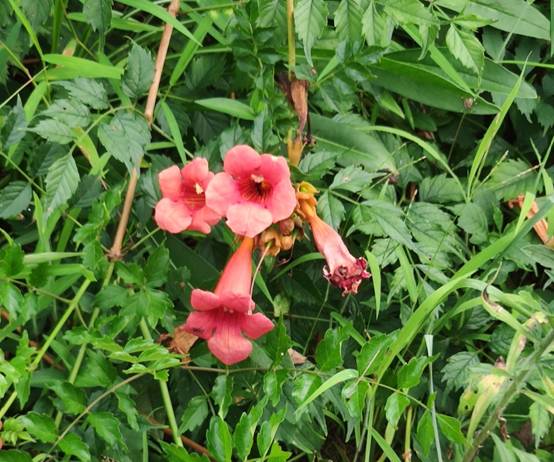 (路边怒放的凌霄花,凌空千尽走龙蛇,隐映柴门野老家——() 舒岳祥)