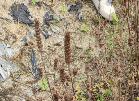 当我们正式开始实习活动时,已是下午3点,在雷鹏老师的带队下,我们小组前往第一个目的地:中草药种植园。至此,贾岭药博园正式向我们揭开了它神秘的面纱。走出基地宿舍,右转沿着小道一路前行,混凝土浇筑成的门框间用铁丝连接,挂起了一只只风车,当微风拂过,整条小道仿佛都为我们而由衷欢欣,在脚下不断向前蔓延的绿意的映衬下,简单的巧思意外的令人感受到质朴的魅力。伸足迈上中草药园的小坡,在老师的介绍下,鲜似流红的博落回,带着熟悉香气的山胡椒,随处可生随处可长的吴茱萸,为伪品名声所累的商陆……一株株药用植物呈现在我们面前——这一刻的心情远非单看教科书上简单的描述可及,莫名的感动一时竟袭上心头。