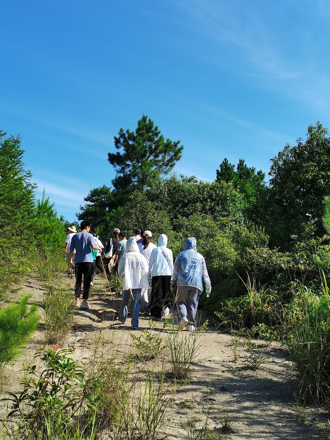 走了一段时间后,我们感觉太阳变得越发耀眼,天气越发酷热,空气都热得凝固了,便有一些消极,老师发现我们的状况后,便关怀地询问我们有没有不舒服的地方,得知我们情况还好,并没有什么不良反应,便继续给我们介绍途经的药用植物。我看到豆大的汗珠在老师的脸上流淌,老师一边揩去汗水,一边有声有色地给我们讲述着那些有趣的知识,便觉得十分羞愧,自己应该克服困难,珍惜这次宝贵的机会,学习更多的知识。