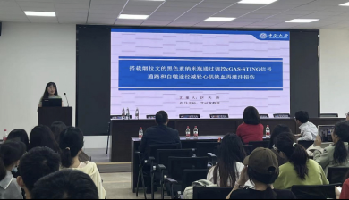 优秀学生代表赵蕤以“干细胞与再生医学”为主题进行学术分享;赵天娇“搭载烟拉文的黑色素纳米瓶通过调控cGAS-STING信号通路和自噬途径减轻心肌缺血再灌注损伤”为主题进行学术汇报,现场同学认真学习并积极提出了疑问与见解,碰撞出了思想的火花。