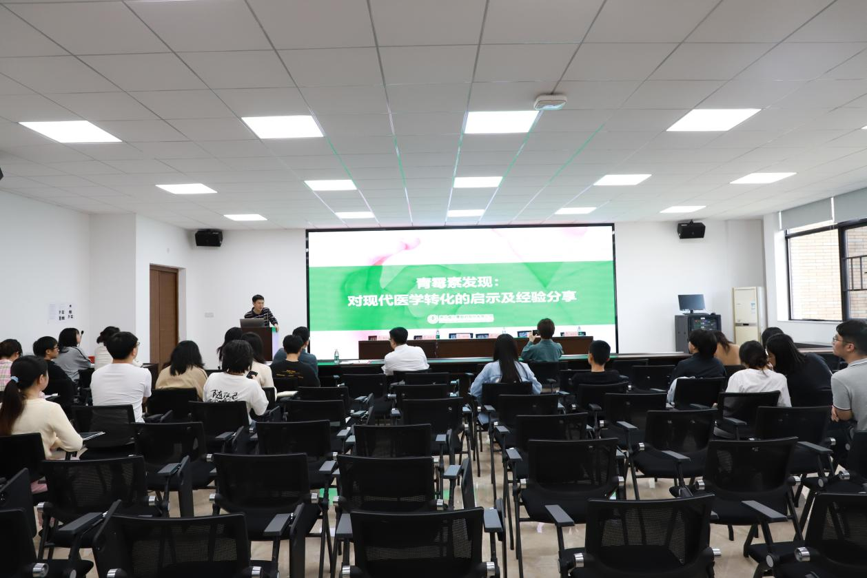 首先,湘北威尔曼制药股份有限公司、广州分公司研发总监付四海博士以“青霉素发现:对现代医学转化的启示及经验分享”为题做了精彩的学术讲座,为在场师生从青霉素发现及思考、现代医学转化的关键、个人的经验分享等方面做了理论联系实际的阐述,讲解了现代医学转化开发的成功之道聚焦于思维转变、专业建设、管理水平等。