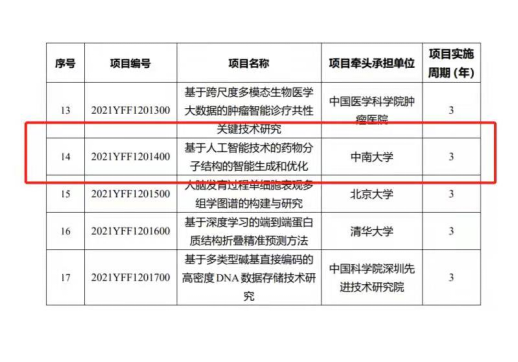曹东升教授领衔的科研团队获批国家重点研发计划“生物与信息融合(BT和IT融合)”重点专项青年科学家项目“基于人工智能技术的药物分子结构的智能生成和优化”(2021YFF1201400),经费达500万元。